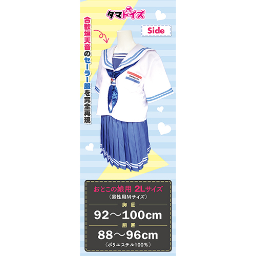 VTuber合歓垣天音 コラボ商品 合歓垣天音のセーラー服を完全再現 メスガキになれるセーラー服 涼やかな半袖タイプ 清涼感溢れる爽やかなデザイン イラスト:朝凪 おとこの娘2Lサイズ(男性用Mサイズ) 胸囲 92〜100cm ウエスト 88〜96cm (ポリエステル100%)