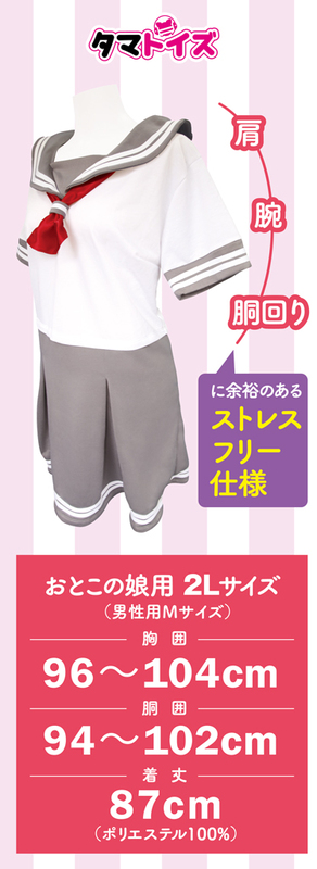 サイズ:H265mm×W240mm×D100mm 質量315g・容量:470g 商品サイズ:おとこの娘用2Lサイズ(男性用Mサイズ) 胸囲:96〜104cm 胴囲:94〜102cm 着丈 87cm