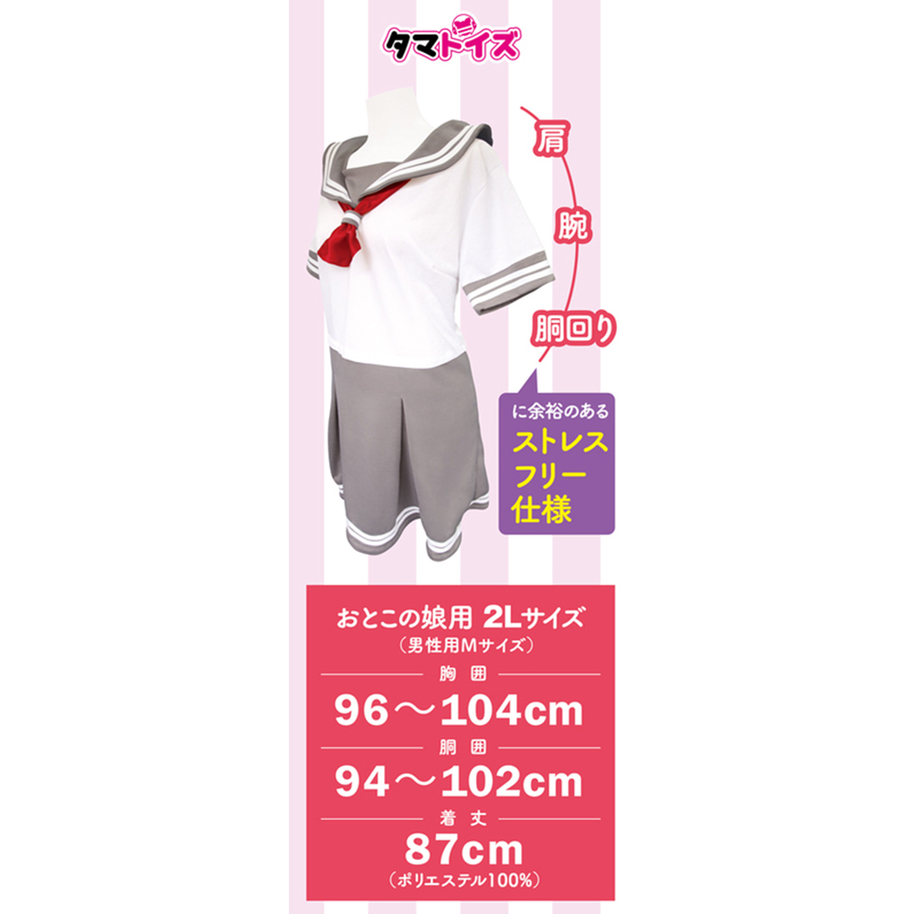 爽やかな半袖セーラー服タイプ 絶対セーラー服が着たいおとこの娘におすすめ! リラックスタイムに可愛いセーラー服 人目を気にせずお部屋でセーラー服 締め付けが少なくゆったり着れるワンピースタイプ スカート裏は肌触り抜群の裏起毛 肩、腕、胴周りに余裕のあるストレスフリー仕様 ゆったりサイズだから大きな方もOK おとこの娘用2Lサイズ(男性用Mサイズ) 胸囲:96〜104cm 胴囲:94〜102cm 着丈 87cm (ポリエステル100%)