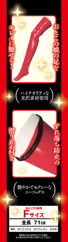 艶やかでセクシーなニーソックス 光沢素材と絶対領域のコントラストが美しい おとこの娘の脚をキレイに魅せる! ずれ落ち防止の滑り止め付き 特殊な光沢加工で最高の輝きを 絶対領域の黄金比を再現できる ※特殊加工のため汚れがついた場合、水に湿らせ布で拭いて落としてください。