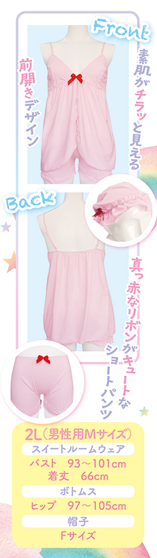 ふんわりリラックス!至福のひとときを過ごすためのとっておきのルームウェア。可愛いナイトキャップ付き。おとこの娘用2Lサイズ