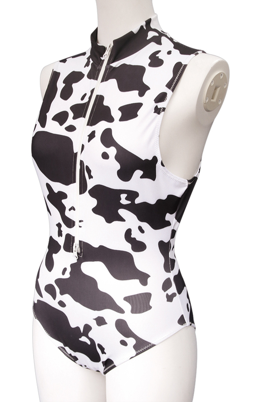 牛柄フロントファスナー競泳水着 おとこの娘用