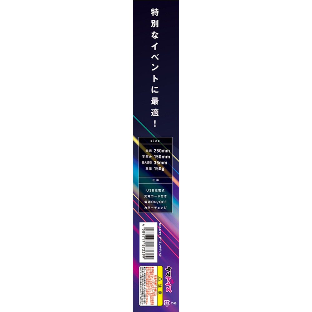 気分も上がるペンライト型ディルド 虹色に光るゲーミングタイプ 映える7COLOR 特別なイベントに最適! ソフトでリアルな触感!! 無理なくスムーズなストレートデザイン 柔らかな肌触りと満足の弾力を再現 握りやすいくびれグリップRED ORANGE YELLOW GREEN LIGHT BLUE BLUE PASTEL BLUE 【本体】 重量:150g 全長250mm 竿部分150mm 最大直径35mm USB充電式 充電コード付き 電源ON/OFF カラーチェンジ ●充電方法: USB充電式 ●使用時