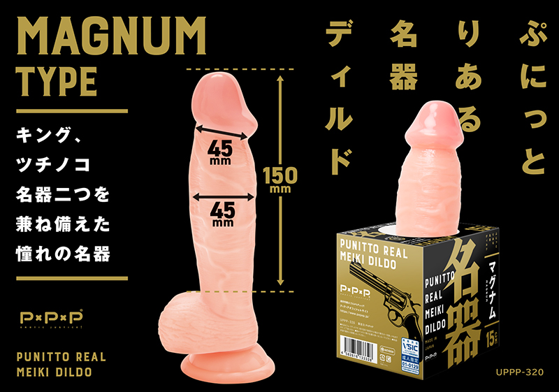 理想の名器をリアル再現!キングとツチノコ名器二つを兼ね備えた憧れの名器『マグナムタイプ:《カリに高さがあり、王冠を被っているかのような先端が大きい名器》と《根元が細く胴が太い、ツチノコに似た名器》をミックス』ぷにっとりあるディルドシリーズは国内生産×国産素材!!誰にでも安心して使えるようにひとつひとつ丁寧に作っています。ぷにっとやわらかやみつき感触×超絶リアルなカラーと造形でこだわりの仕上がり。棒部分の長さは150mm
