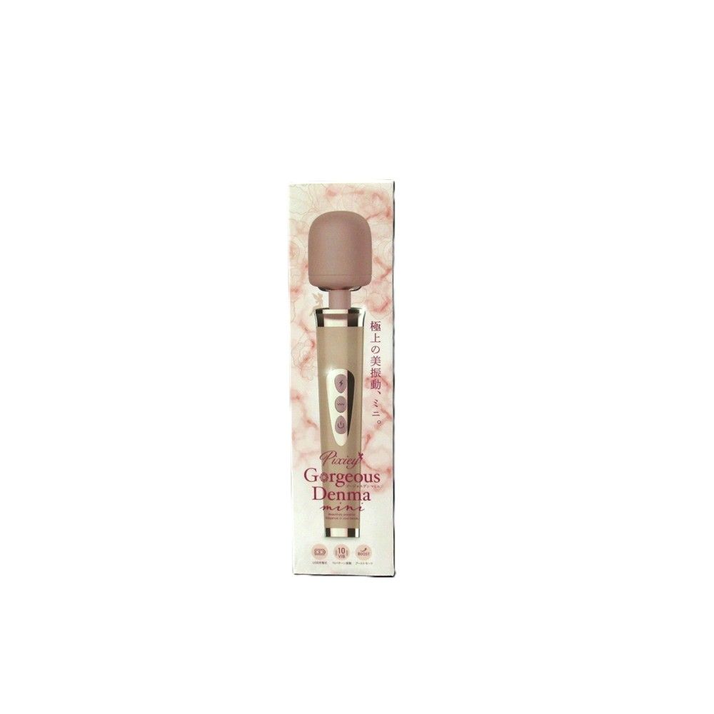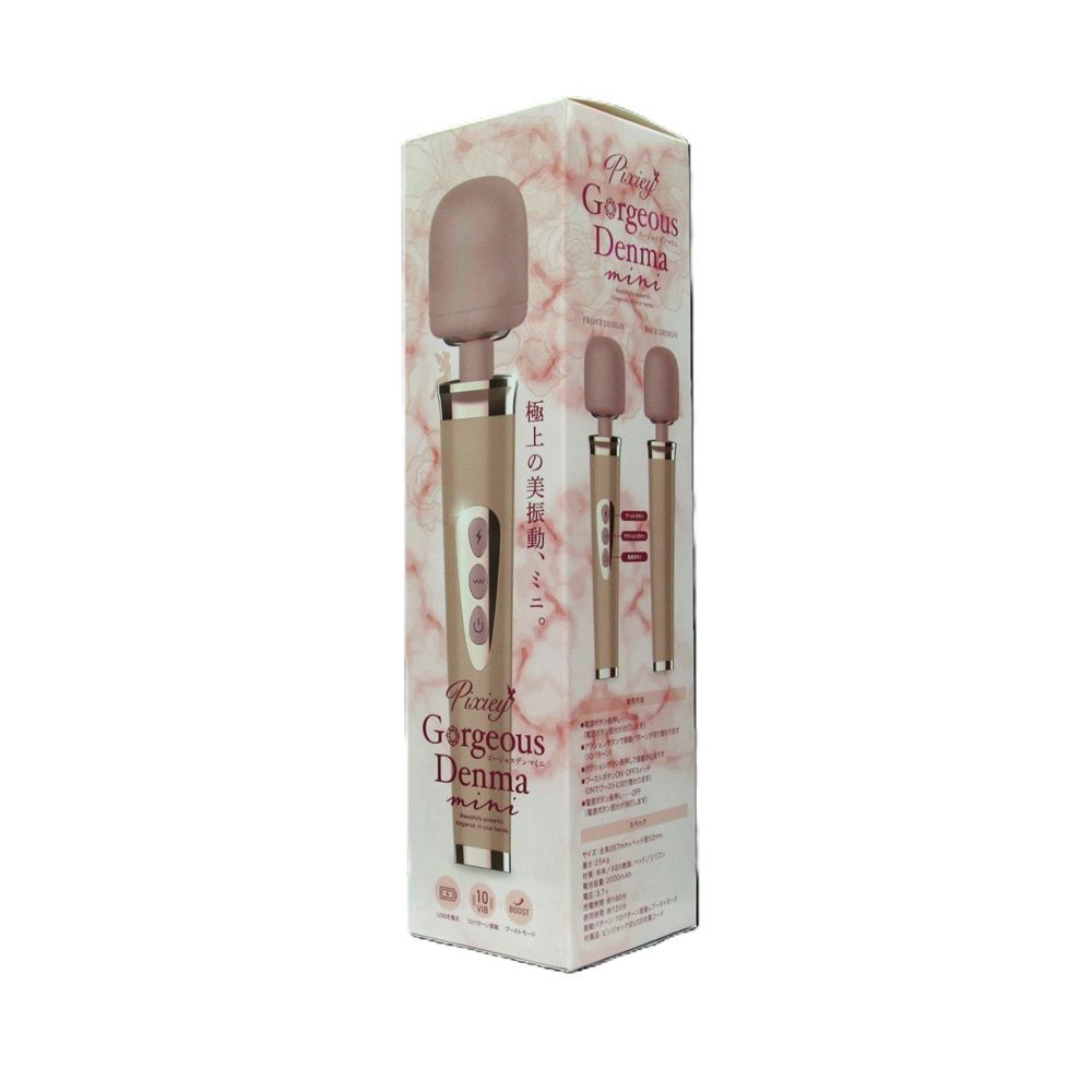 大ヒットシリーズフェアリー"に、姉妹シリーズが新登場です。好奇心と遊び心で世界を明るくする妖精をモチーフとした新シリーズ"ピクシー"。見て楽しい、使って楽しい、ワクワクとトキメキにあふれた魔法をお届けいたします。そんな"ピクシー"シリーズから「ゴージャスデンマミニ」が新発売。エレンガントで大人っぽいミュートカラーに、美しく洗練されたボディフォルム、光沢感のあるメタリックパーツは、その名の通りにゴージャスそのものです。もちろん見た目だけではなく、強力パワーのUSB充電に、使いやすいコードレスタイプ、10パターンの振動アクション、さわり心地の良いシリコン製ヘッド、さらにはいつでも最強振動になるブーストモード搭載と、機能面でもゴージャス。こちらは、コンパクトでかわいいサイズとなる全長267ミリのミニボディタイプ。毎日を美しく、強く、心地よく。極上の美振動で、ピクシーの魔法を楽しみましょう。充電時間180分、使用時間120分(最大電流時)"