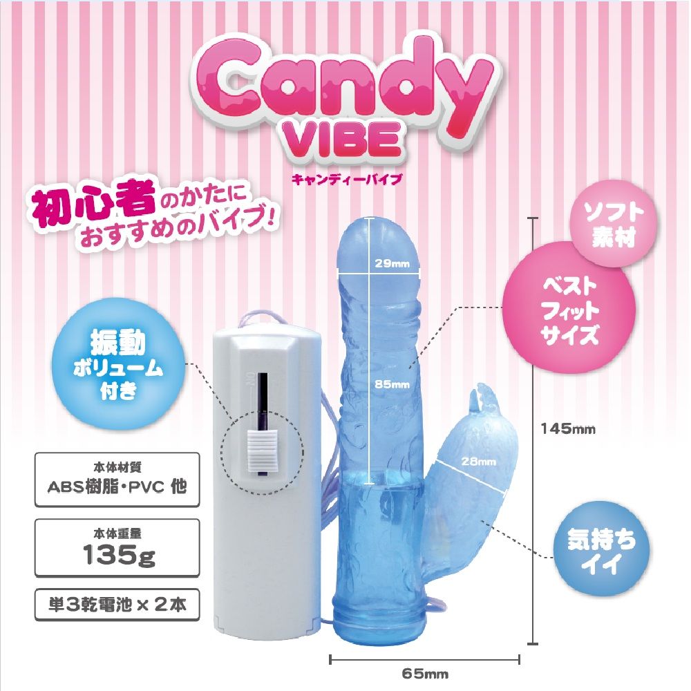 ラブホで定番!初心者のかたにおすすめのバイブレーター「キャンディーバイブ」!全長145ミリの小ぶりでちょうどいいサイズの振動バイブレーターです。ぷにぷにのソフト素材に、心地よいぶるぶる振動、スライダーで調整できる振動ボリューム、ピンポイントで攻められるクリバイブ付き、一人でもパートナーでも使いやすいコードタイプ、いつでも使える単三形×2本の乾電池駆動。さらに、とってもスウィートで可愛い、キャンディのようなクリアブルーカラー。初めてでも優しく使えるキュートなバイブレーターです。