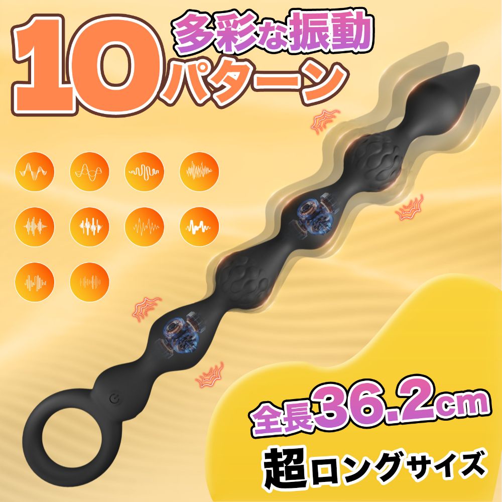 超ロング&ビッグサイズで、満ちあふれる充実感を楽しめるビーズアイテム。5粒のコーン型ビーズがスムーズにフィットし、デュアルモーター×10パターン振動で多彩な刺激を演出します。全長36.2cmのロング設計でしっかり楽しめるのも魅力。2粒目&4粒目のデコボコ模様が刺激に変化をプラスし、飽きにくい設計です。丸型リングで扱いやすく、しなやかに曲がるソフトシャフトで快適。USBピンホール充電&IPX5防水。