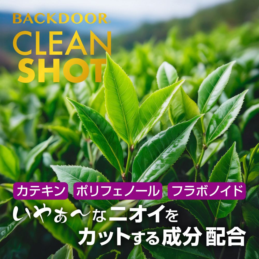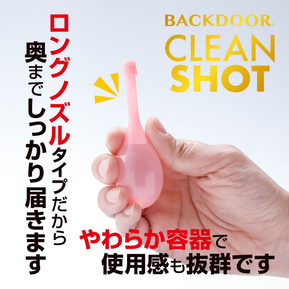 人気のバックドアシリーズより、バックドアプレイ前のケアアイテムが登場!奥までキレイに清潔に、爽やかな大人の時間を演出する一本です。このバックドア・クリーンショットはプレイ前のエチケット商品です。サッと使用することで内側を清潔にします。ロングノズル仕様なので、奥までしっかりと汚れを洗い流してくれます。またカテキン・ポリフェノール・フラボノイドといった成分を配合し、嫌なニオイをカットしてくれるでしょう。清潔感・不快感を抑えた大人の時間を演出します。製造は国内の工場で生産し、安心してお使いいただけます。様々な層に人気のバックドアプレイ。華麗に楽しむためにも、ぜひご使用ください。内容量20mL