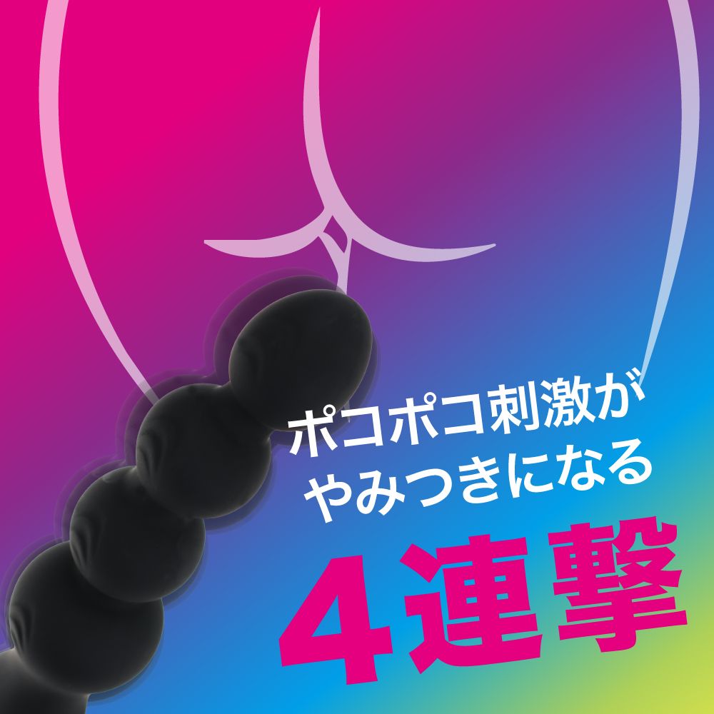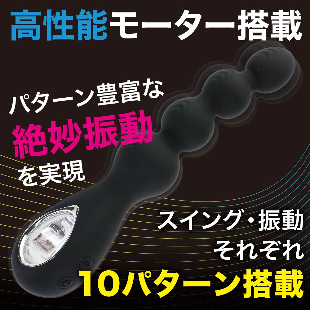 大人気「噂の」シリーズに待望のアナ用バイブが登場!4つのボールが挿入時にポコポコ気持ち良いだけで無くまさかのスイングアクション&ヘッドバイブで全開シゲキ!二つの快感アクションを個別に操作出来ます。どちらも10パターンのアクションを選べるので自分好みの責め方で自由に楽しめます。ボールサイズも先端は小さく細くする事で挿入し易さに配慮してます。肌触り滑らかでローションノリも良い高品質シリコン素材採用。ツルンっとした挿入感が楽しめます。出し入れし易いリングタイプの持ち手をデザイン。強力アクションを生み出す高性能リチウムイオンバッテリー搭載。120分の充電で最大60分の連続使用が可能(使用環境により大幅に増減します。)防水性能IPX6だから使用後もしっかり洗えて衛生的に永くお使い頂けます。