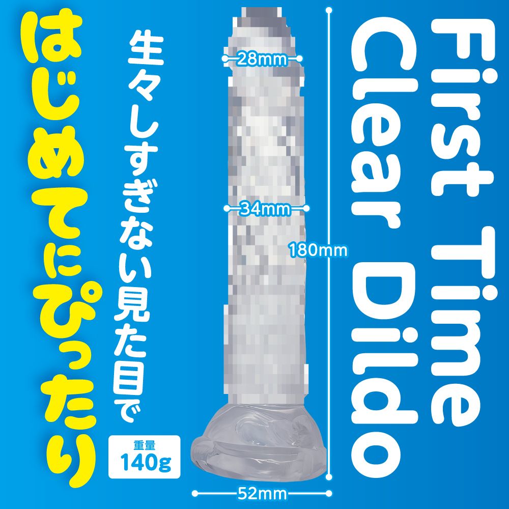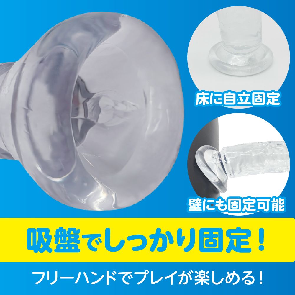 初心者でも安心して使えるLサイズクリアディルド。吸盤で壁や床に固定すればフリーハンドで使用可能。初めてでも安心の、スタンダード形状のクリアディルド。挿入部160mm、最大幅34mmと、奥まで届かせてしっかりした存在感を楽しめるロングサイズ。根〇の吸盤で床や壁に固定すれば、手を使わずに様々な体勢で楽しめます。小ぶりなサイズでも適度に施されたデコボコがしっかり刺激を生み出します。色・フォルムともに生々しさを抑えた初心者向けディルドです。