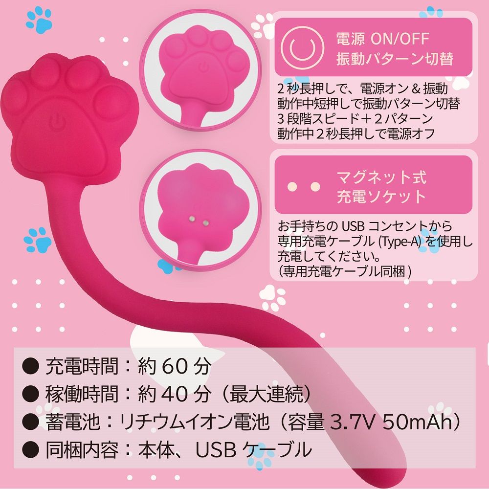 可愛い猫の手から伸びるローター部分には針金が入っており、好きな角度に曲げて楽しむことができます。