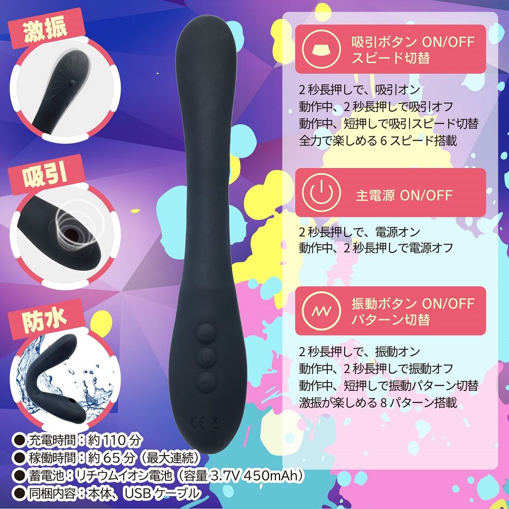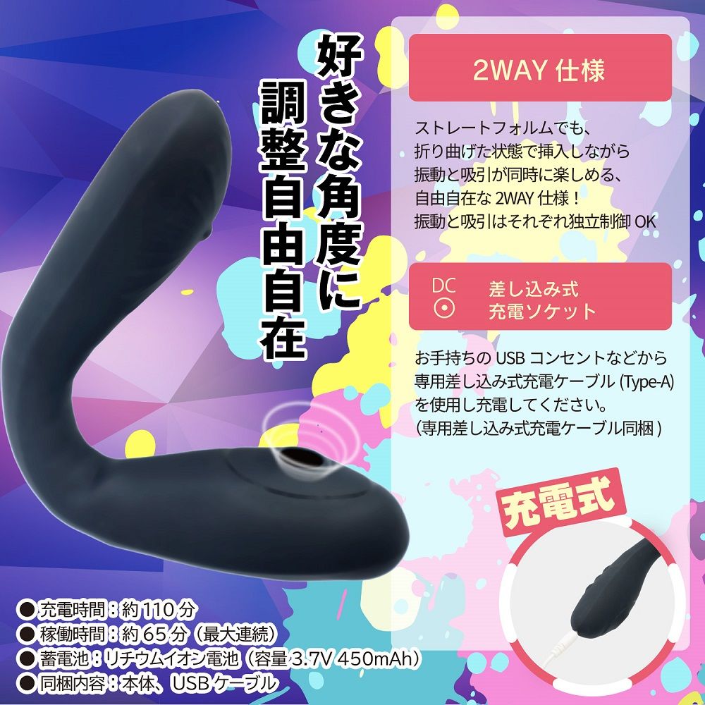 バイブと吸引を用途に合わせて変幻自在!折り曲げて使える2WAYバイブ!